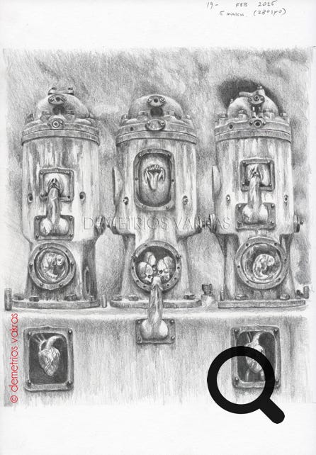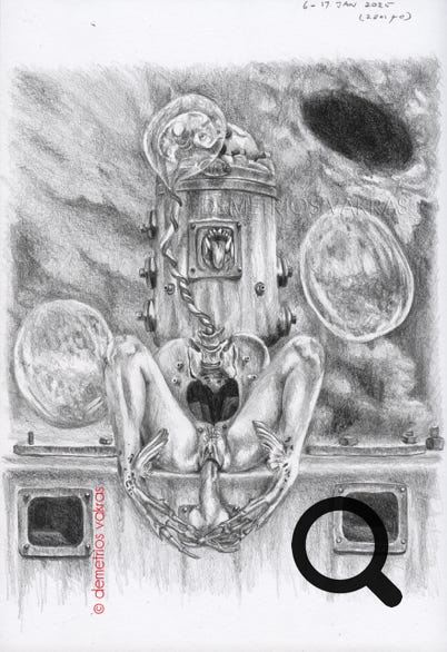 an online exhibition of surreal drawings by surrealists Demetrios Vakras & Lee-Anne Raymond